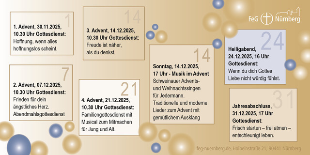 30.11. I Advent und Weihnachten „Die Ankunft“ Herzliche Einladung zur Predigtreihe: Hoffnung, Frieden, Freude, Liebe ZUR SEITE HOME ZUM NEWSARCHIV